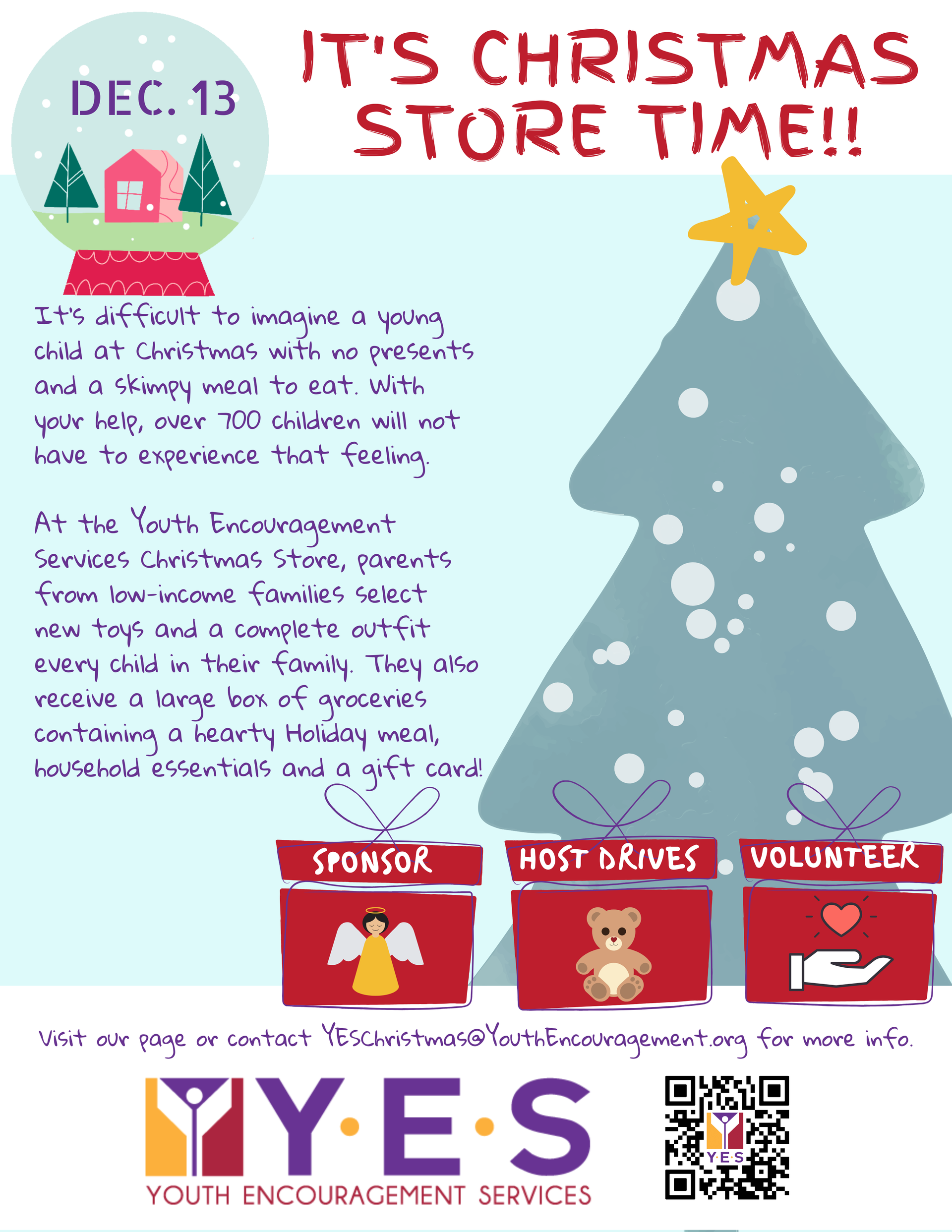 This Christmas Store will provide an opportunity for 250 parents to hand-select toys for over 750 children at our annual YES Christmas Store!